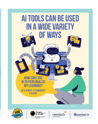 How AI Tools are Used Poster, designed with secondary classrooms in mind. This poster is part of the Artificial Intelligence Poster Set, created by Nextech, in the Indiana Learning Lab.