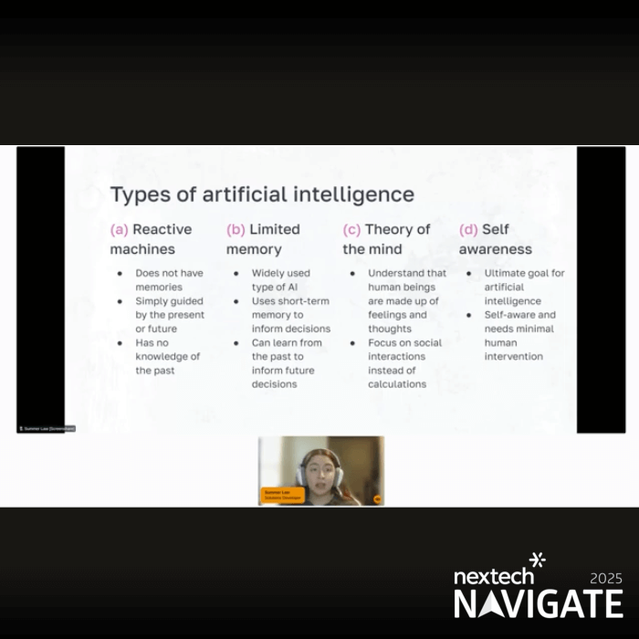 This is a recorded session from Nextech Navigate 2025, a virtual conference for Indiana high school students. Summer Law is the presenter.