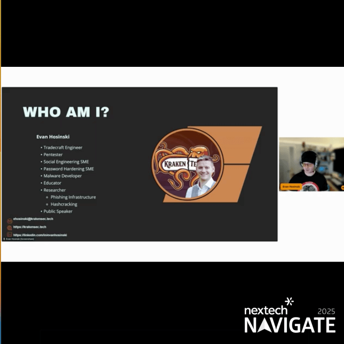 This is a recorded session from Nextech Navigate 2025, a virtual conference for Indiana high school students. Michael Pettet and Evan Hosinski are the presenters.