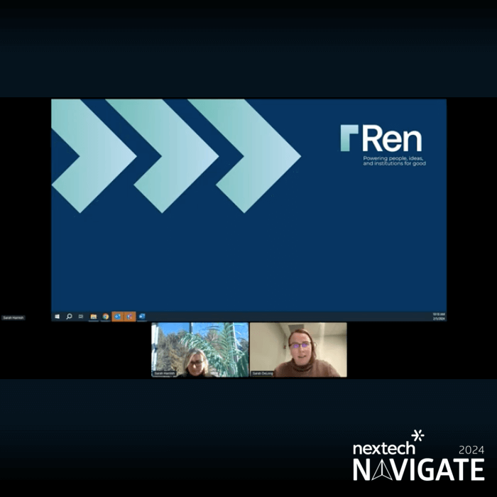 This is a recorded session from Nextech Navigate 2024, a virtual conference for Indiana high school students. Sarah Harnish is the presenter.