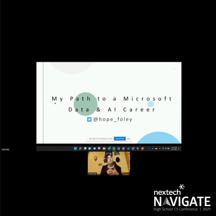This is a recorded session from Nextech Navigate 2021, a virtual conference for Indiana high school students. Hope Foley is the presenter.