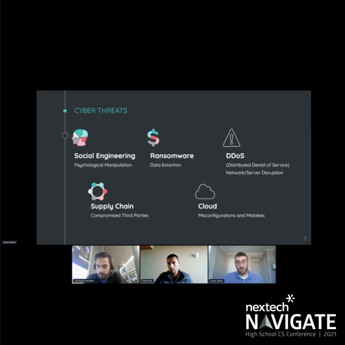 This is a recorded session from Nextech Navigate 2021, a virtual conference for Indiana high school students. Christopher Nouhan, Paul Faria and Cyrus Green are the presenters.